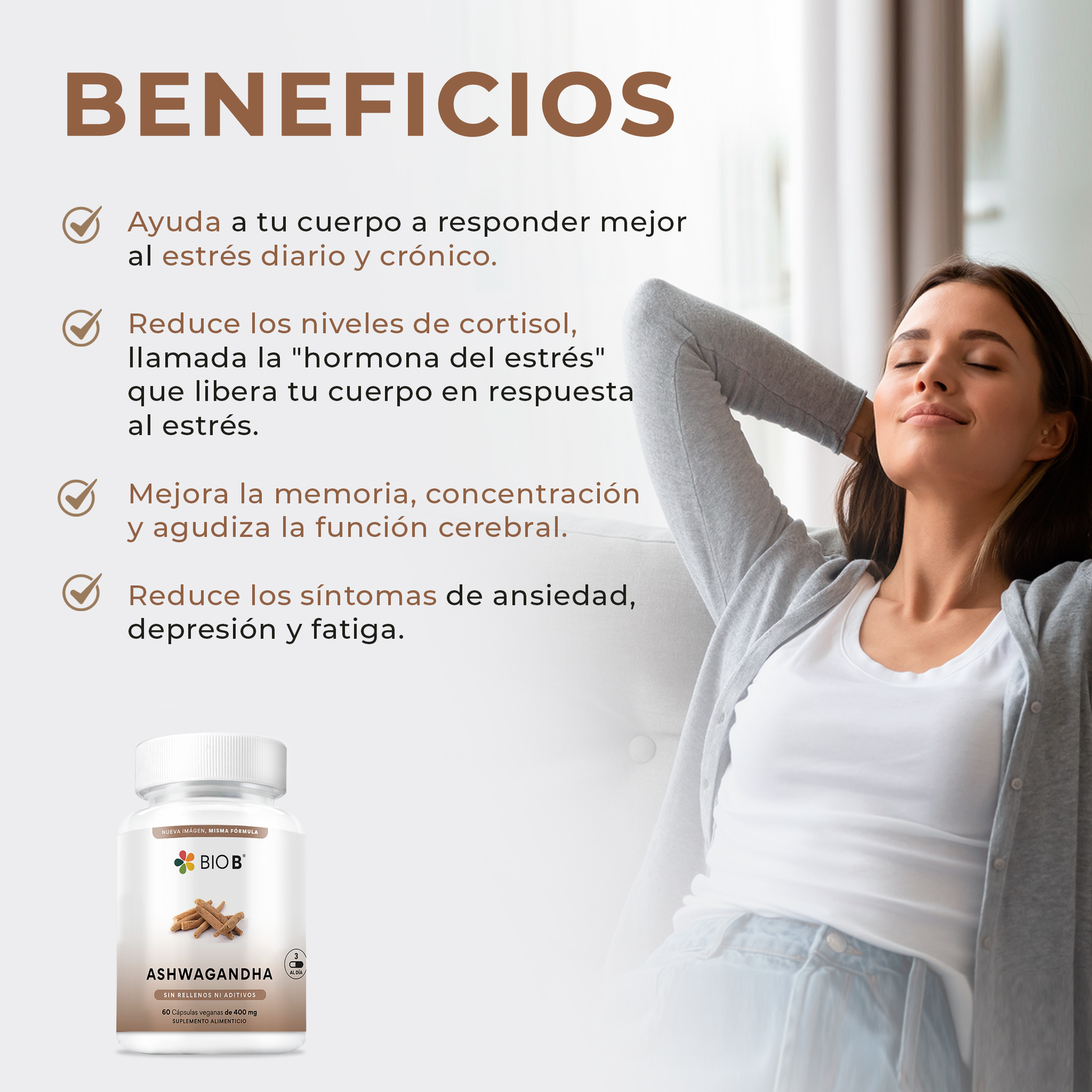 Descubre Ashwagandha, tu aliado contra el estrés diario y crónico. Reduce el cortisol, mejorando la respuesta al estrés y potenciando la memoria, concentración y función cerebral. Además, alivia los síntomas de ansiedad, depresión y fatiga. Un impulso natural para tu bienestar mental y emocional.