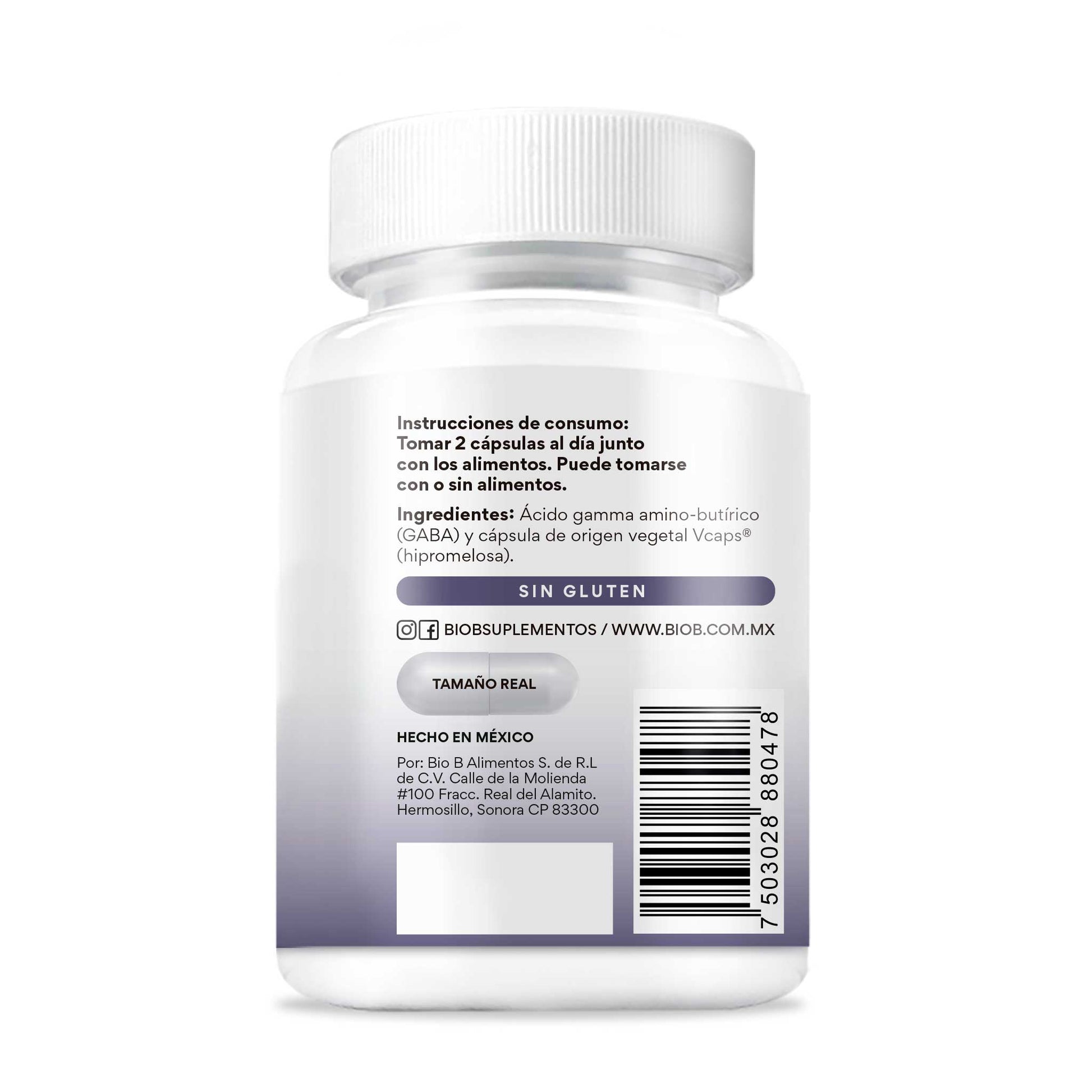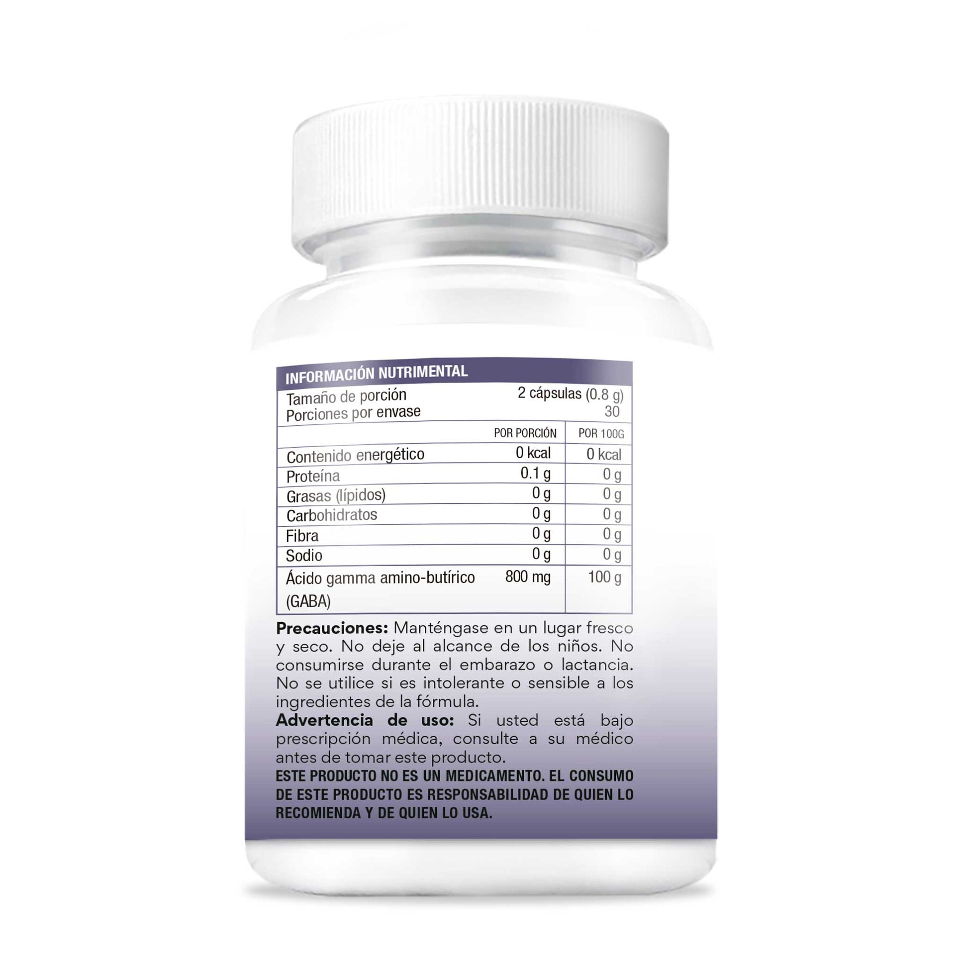 Ácido gamma amino-butírico (GABA) y cápsula de origen vegetal Vcaps® (hipromelosa).