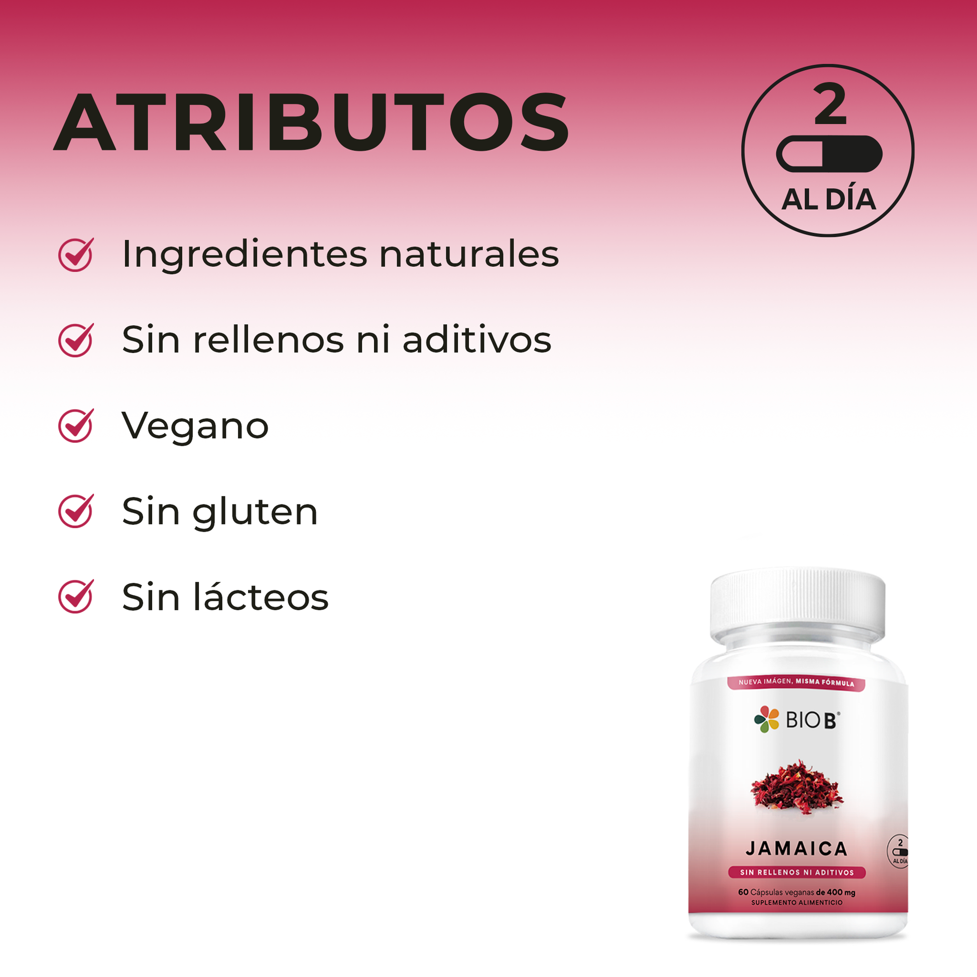 Ingredientes: Jamaica en polvo (Hibiscus sabdariffa) y cápsula de origen vegetal Vcaps® (hipromelosa).